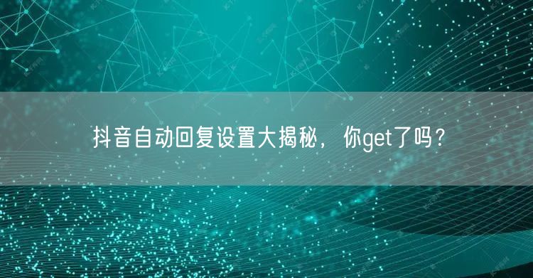 以上就是关于抖音自动回复设置的大揭秘。你get了吗?赶快去试试吧!